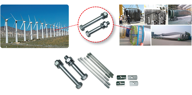 We have provided most of domestic and overseas major wind power companies, including GE, with flange bolts (DIN6914, GR 10.9) that connect towers, T-bolts as blade fasteners, cross bolts, and bolts to fasten upper generator internals. Also, we provide products that meet at least the 720-hour neutral salt spray test by using delta-tone and seal coating as a finish, the alkali tolerance and anti-corrosion coating.